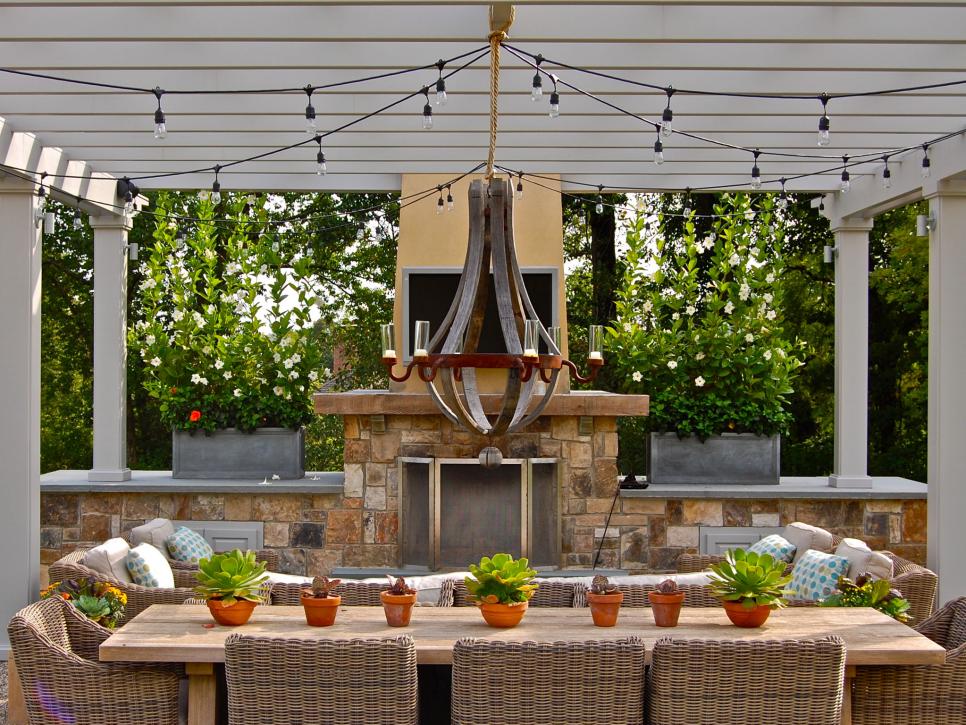 If you happen to have a pergola or covered patio, try investing in a chandelier. It is a great statement piece that can set the tone for an elegant dining experience. However, traditional chandeliers can be pricey and difficult to install.