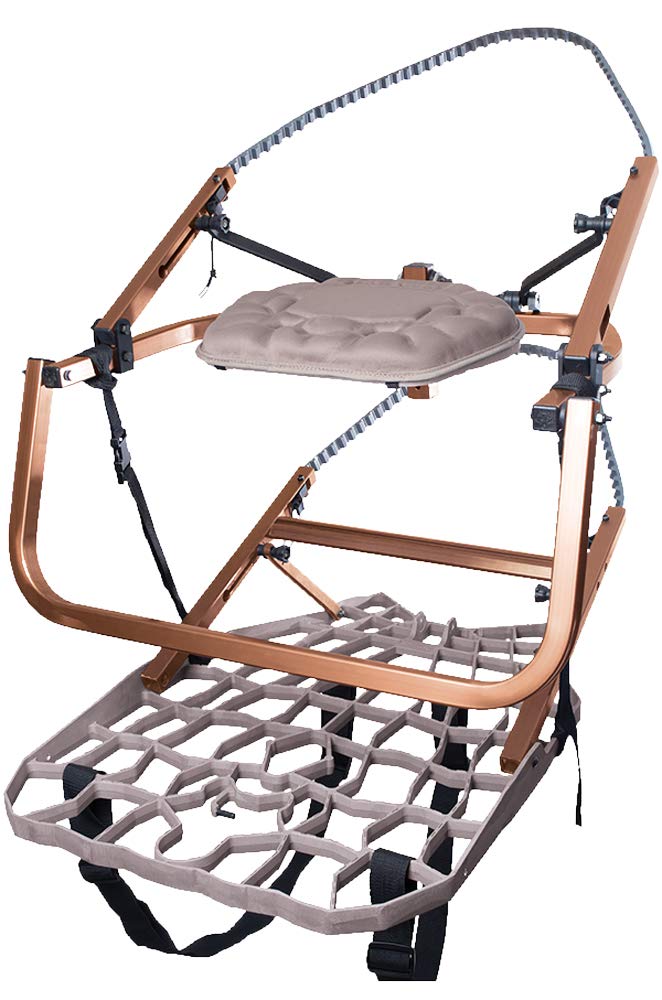 The Millennium Treestands M50 Hang-On has already gained huge popularity and also won an award. The award-winning tree stand offers easy adjustment. It only measures 20 lbs and can hold a weight of 300 lbs with great ease. It has become a leading choice as far as load capacity and weight management is concerned. With its interlock leveling system, the adjustment of the platform can be made with great ease. You can maximize the open design when you fold the seat. It will give you a spacious foot platform. Its adjustable seat can be leveled to fit all types of trees.
