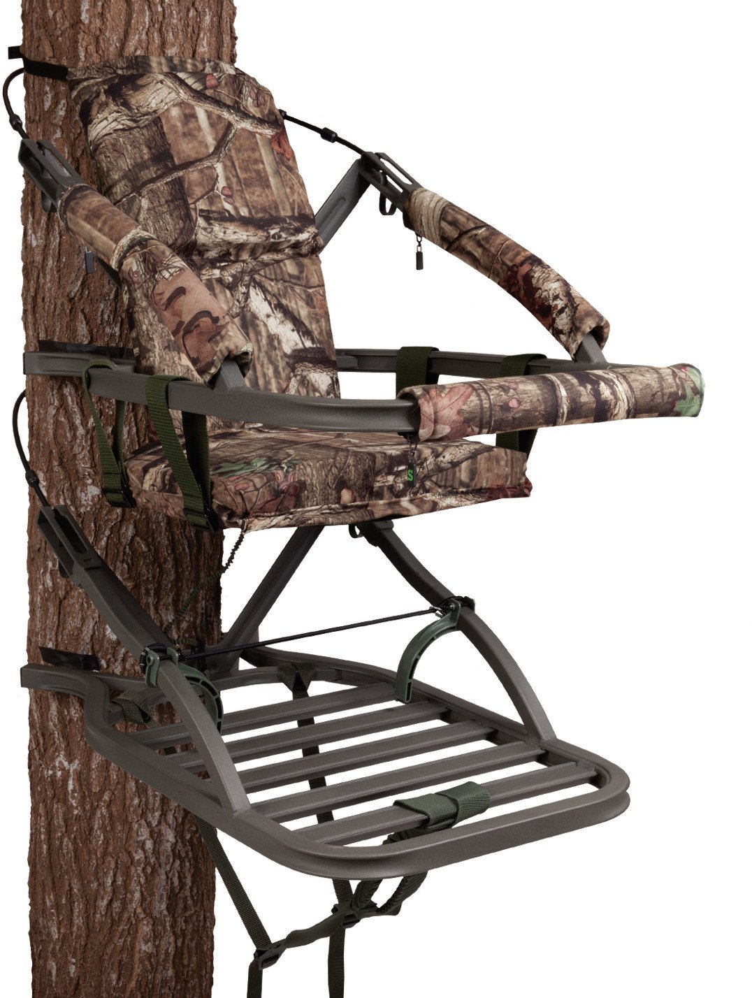 River Edge Big Foot XL Lounger tree stand is affordable and offers you the essential comfort. It offers great value for your money. The tree stand’s all-metal platforms and the seat is manufactured from top quality material. It weighs 26 pounds and has scores of positive customer reviews who mention the overall comfort of the stand. It offers a robust seat along with padded backrest and armrest. The Tree stand allows you to fold both the armrests. It is easy to use and does not produce any noise. It is available at a reasonable price and offers stunning features for your comfort.