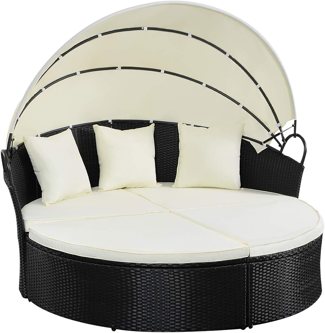 The Homall Outdoor Daybed is the perfect furniture for your patio. It comes with a retractable canopy to make it suitable for some shade reading, or even some sunbathing. The retraction is with help from a telescopic pole that makes it smooth and easy to use.