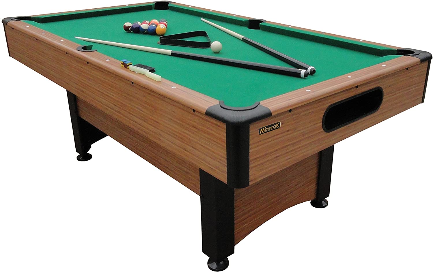 Talking about the dimension, Mizerak Billiards Table is 72 inches long, 47 inches wide, and 9.5” in height. With the assembled weight of 117 pounds, the table is stable, well-leveled, and firm with the surface. All accessories are included, and there is a 90-days warranty from the producers.